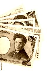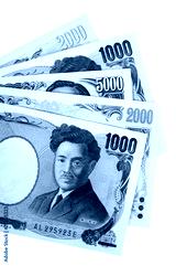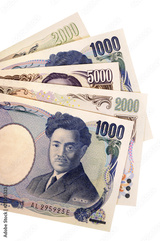 Various different japanese Yen money currency bills or notes isolated white background photo