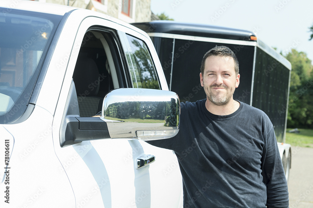 A Contractor worker beside of his truck