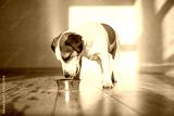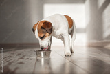 Cute dog eating food from bowl