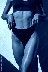 Beautiful athletic girl in brown underwear. model posing on a white wall in neutral lingerie