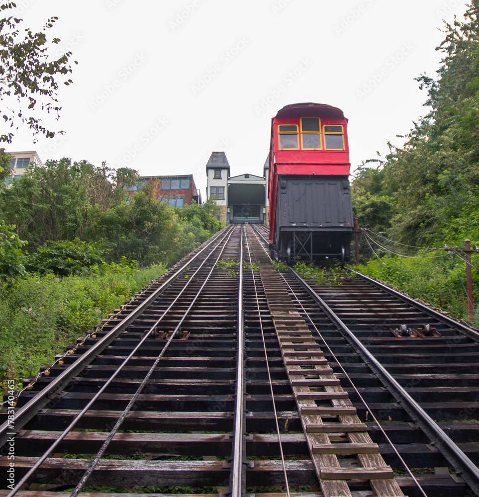 Looking up the Duquesne incline at the funicular rail transportation up mount Washington