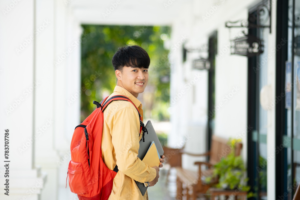 Smiling College Student Holding Books in School Corridor