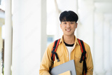Smiling College Student Holding Books in School Corridor