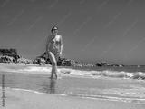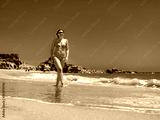 Beautiful woman walking on sunny beach