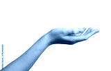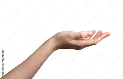 Hand palm stretching out, cup shape, showing gesture, isolated on white background, transparent png