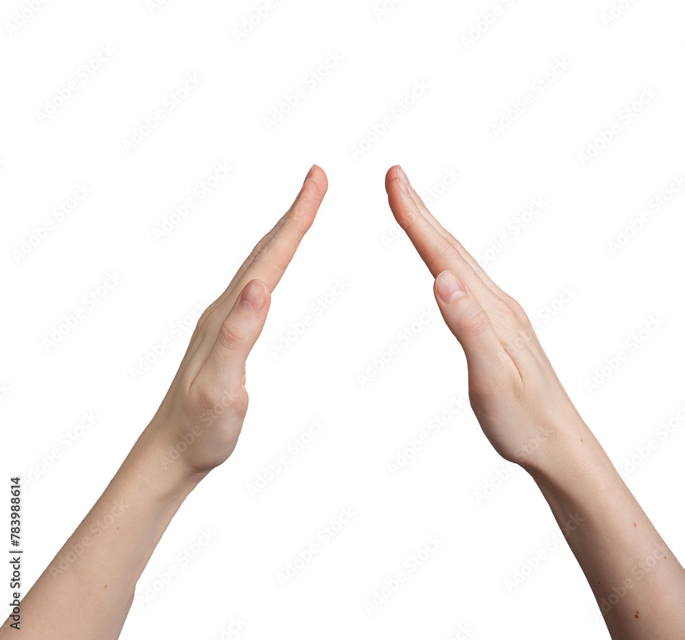 Two hands showing home roof, gesturing, isolated on white background, transparent png