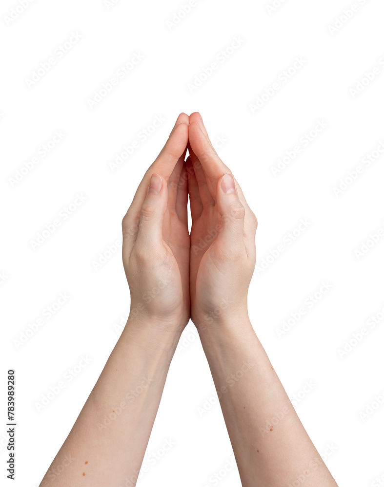 Two hands, palms saving warm, warmth, caring, peace, calm symbol, gesture isolated on white, transparent png