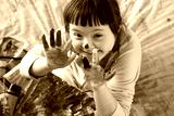 Cute little girl with painted hands