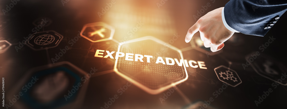 Businessman touching finger on the virtual screen and selecting Expert advice