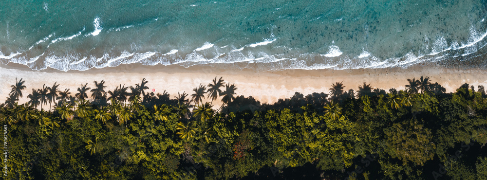 Aerial drone shot of Bingil Bay Beach at Mission Beach, Tropical North Queensland, Australia