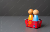 Customers in a shopping basket. Buyer preferences. Market basket research. Gain insight into the hearts and minds of consumers. Products and marketing strategies
