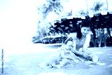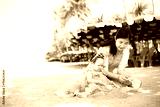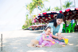 Mother and girl playing in the sand on the beach, Pattaya, Thailand,Mother with children playing with sand on beach