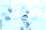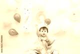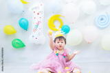A young girl celebrates her 1st birthday. A young Asian girl celebrates her first birthday.