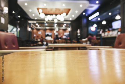 Table top with Blurred Interior Bar Restaurant cafe Perspective