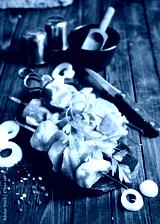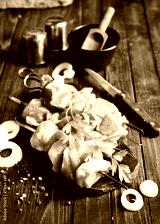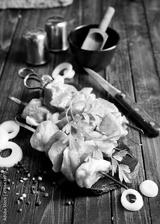 Raw meat kebab. Top view, copy space. Raw kebab in spices.