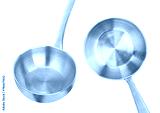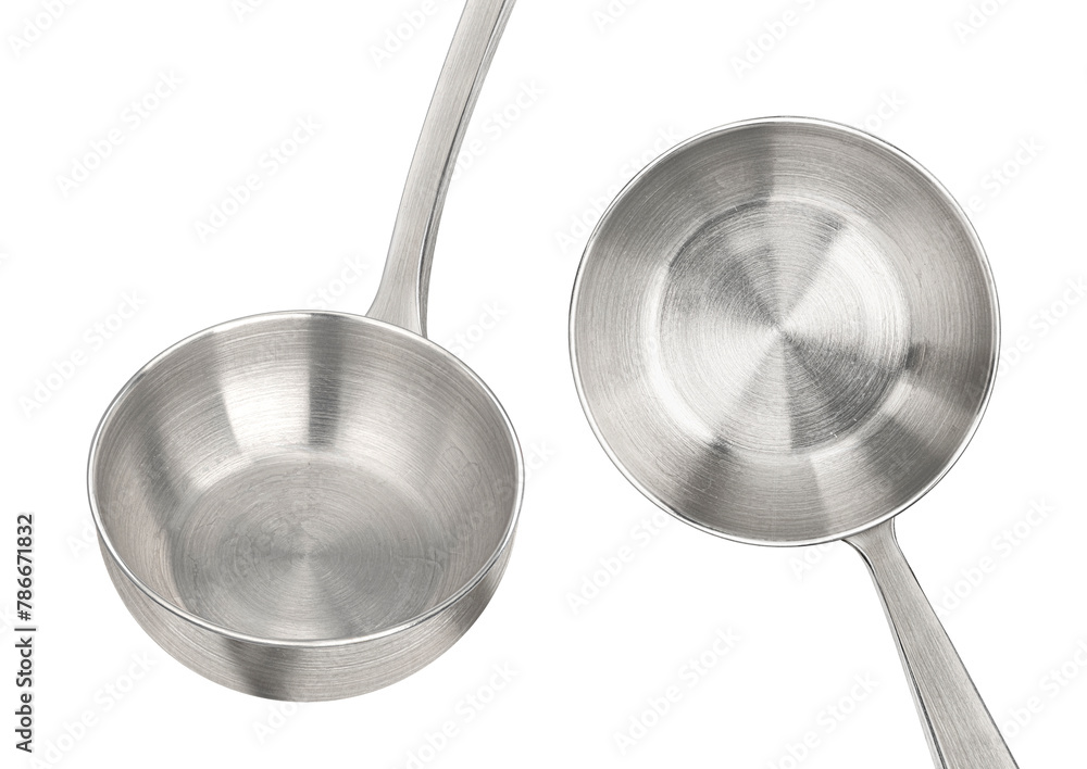 Empty metal ladle isolated on white background, full depth of field