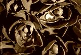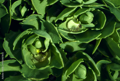 Stonecrop in sunlight, ornamental garden plant. Sedum prominent (Sedum spectabile). Close up image