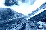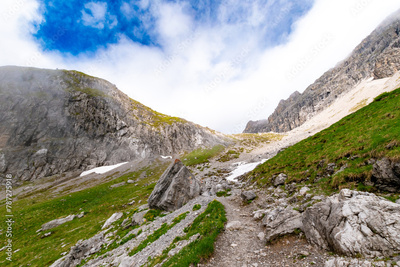 Alpine Hiking Trail Over Scree Fields to Massive Rock Formations at Lünersee
