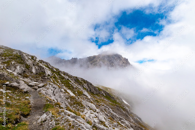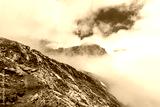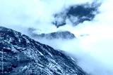 View of a Rocky Massif in the Austrian Alps Shrouded in Clouds