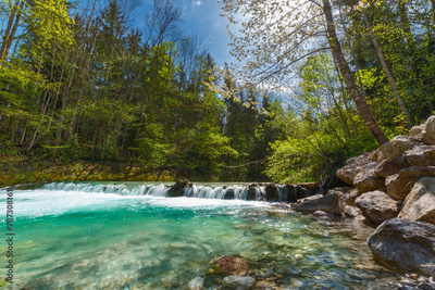 Crystal Clear Waters of the Ramsauer Ache Flowing Through a Serene Forest