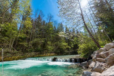 Crystal Clear Waters of the Ramsauer Ache Flowing Through a Serene Forest