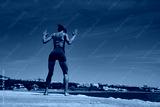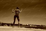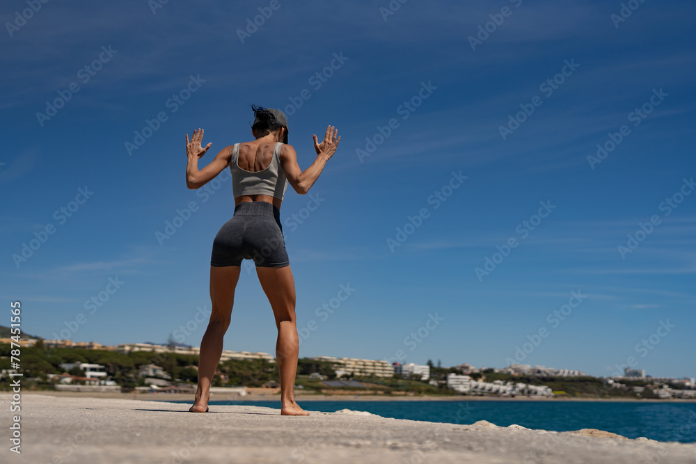 Sultry Brunette Athlete in Sportswear and Baseball Cap Training by the Sea
