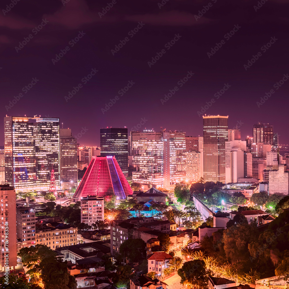 Rio de Janeiro skyscrapers night panorama, Brazil