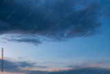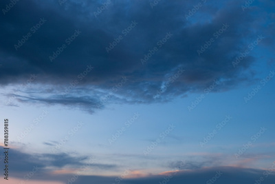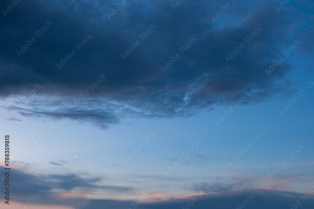 beautiful dramatic landscape, blue sky with dark clouds, concept transcendence, seasonal change of weather, Heaven and infinity, height, kingdom of God, banner