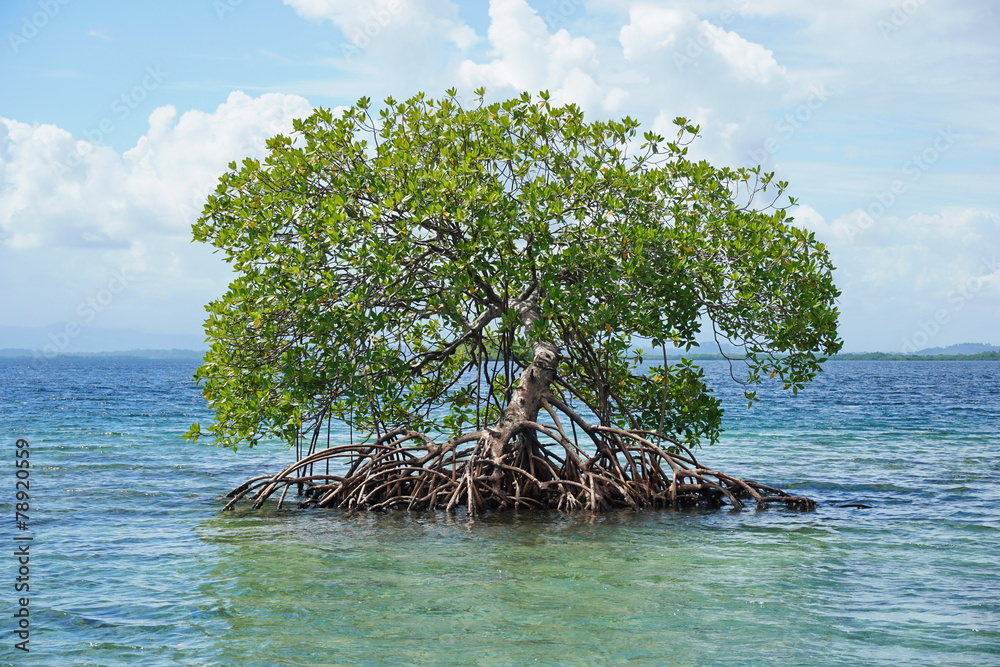 Secluded mangrove tree Rhizophora mangle in water