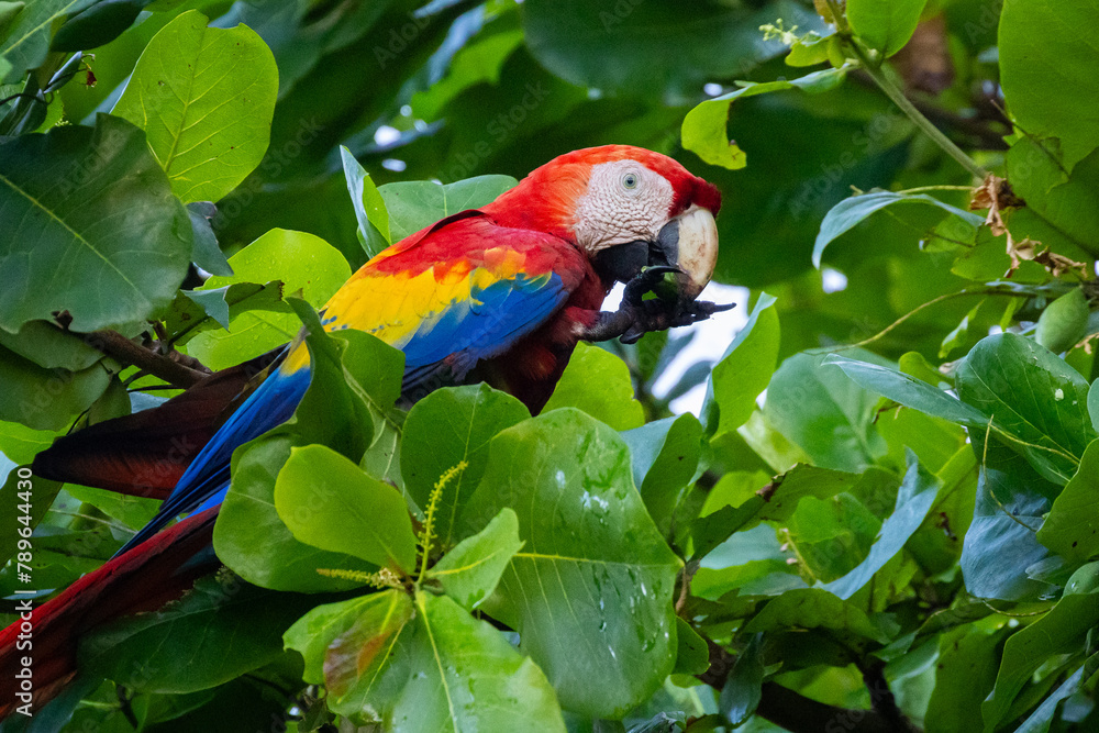 Scharlachara in einem Mandelbaum