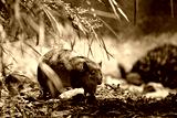 Southern brown Bandicoots are about the size of a rabbit, and have a pointy snout, humped back, thin tail and large hind feet