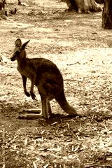 the kangaroo-Island Kangaroo has a light brown body with a white under belly. They also have black feet and paws