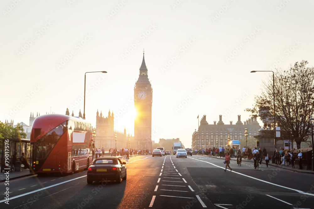 Westminster Bridge at sunset, London, UK