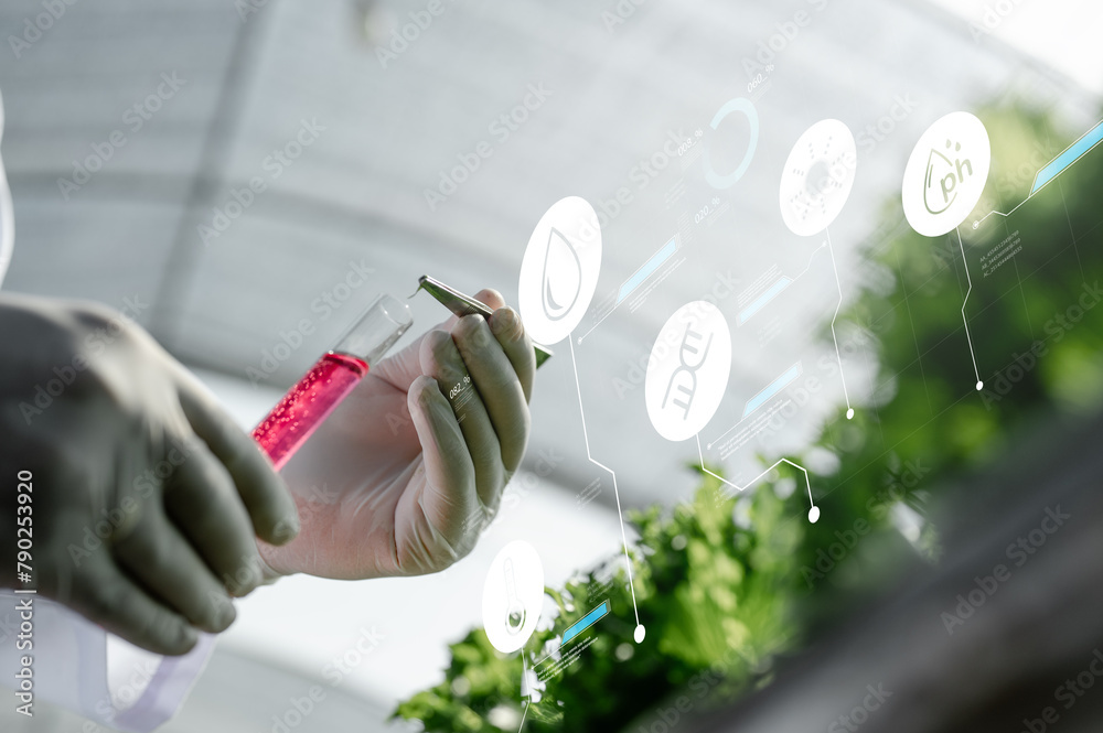lab, research, scientific, study, education, medical, science, biological, test, laboratory. A researcher is holding a test tube with a red liquid in it. representation of a scientific experiment.