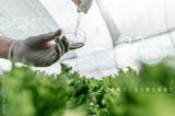 dna, expertise, gene, genetic, lab, research, scientific, medical, science, biological. A person is holding a test tube with a liquid in it. The liquid is pink. The image is of a laboratory setting.
