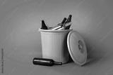 Trashcans, glass, bottles waste sorting concept. Recycled plastic trash bins