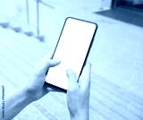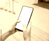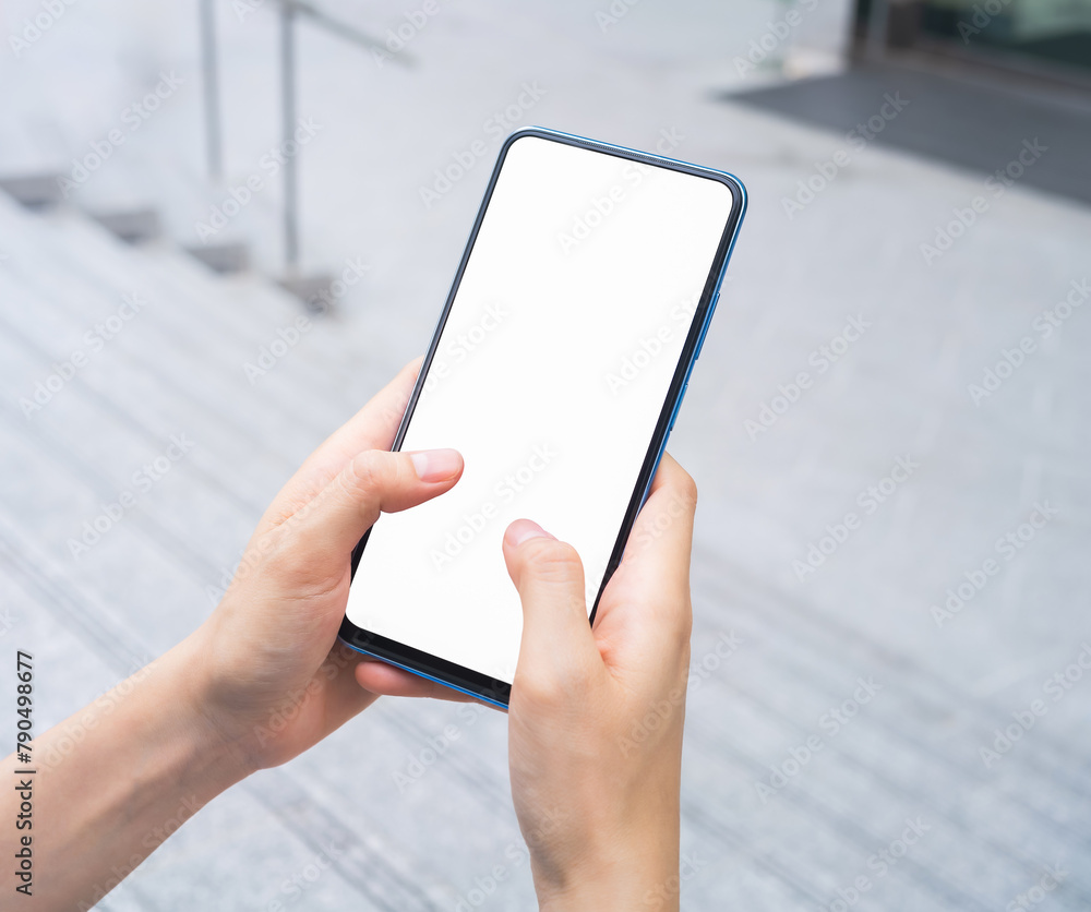 Hand holding smartphone mockup of blank screen, Take your screen to put on advertising.