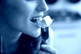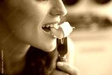 Closeup on young woman eating camembert