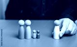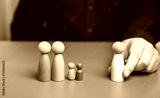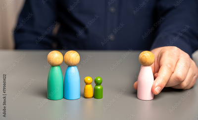 Conceptual image of a same-sex marriage family consisting of two men. Choosing LGBT as a lifestyle. Against heterosexual marriage. Wooden figures of people.
