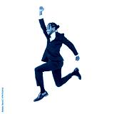 Full body photo of a Black male business person jumping. Full body photo PNG with transparent background precisely cut out with clipping path.