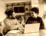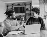 father child home family homework son teenage parent education teamwork high five high five laptop teen boy kid teaching man young happy learning together school computer success achievement