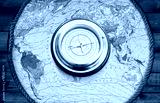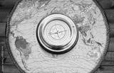 Magnetic retro compass on old map for travel