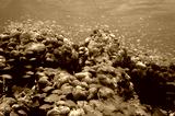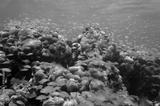 Underwater coral reef with shoal of fish in Panama