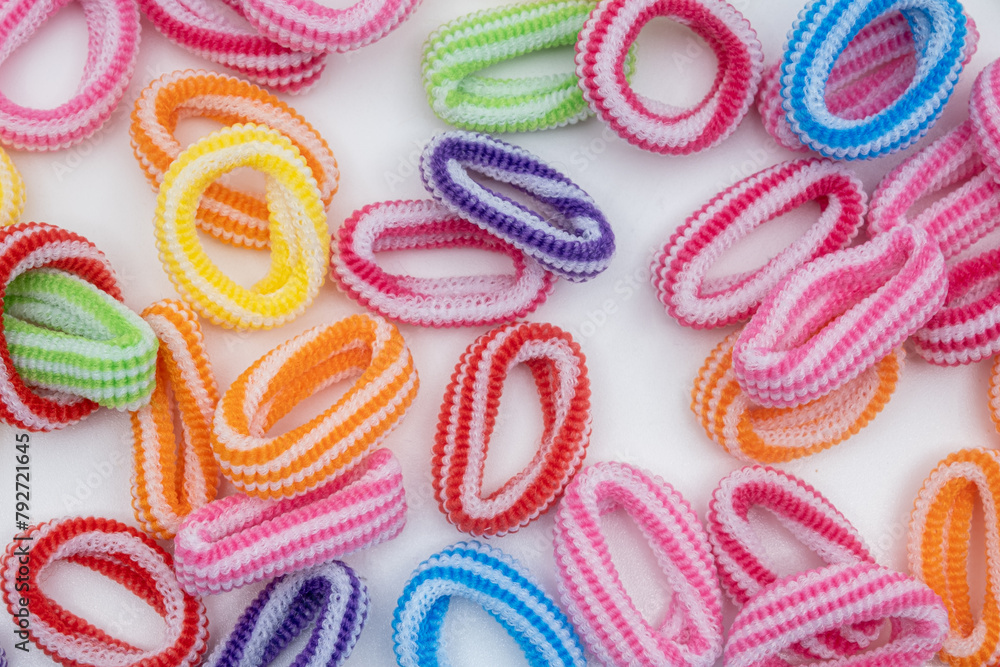 Heap of various hair ties. Multicolored elastics