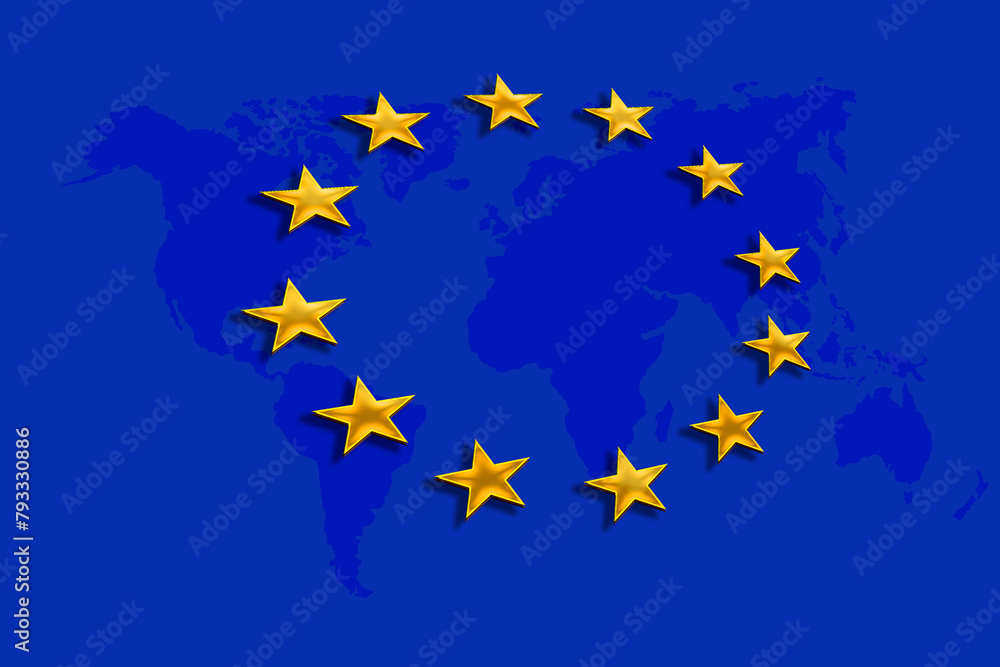 flag European Union on beautiful background, concept of politics, global business, trading, international cooperation, copy space, template