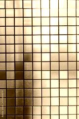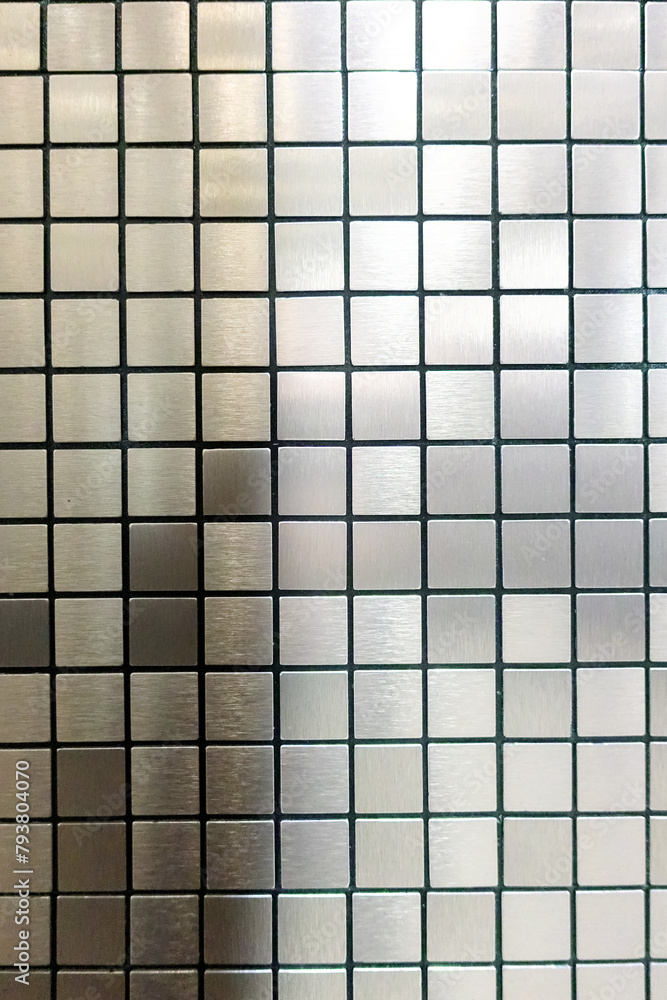 Metal background with reflective surface. The surface has a grid pattern of squares that adds a unique visual element to the design.