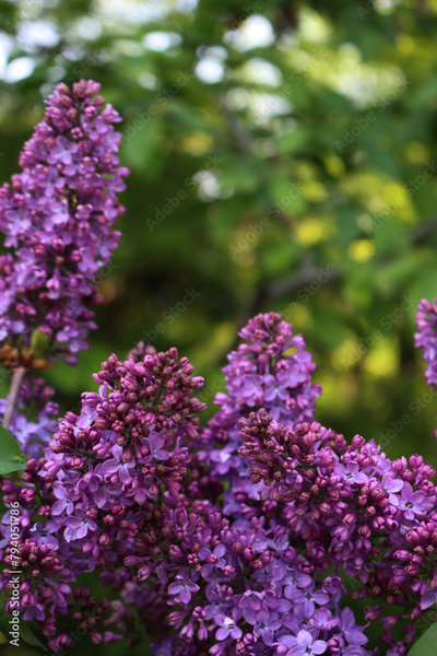 Close-up of Lilac pink blossoms and flowers on branches on springtime. Syringa vulgaris in bloom