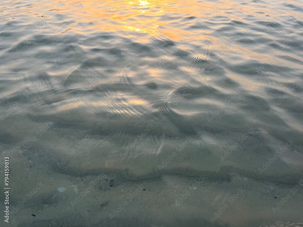 Transparent sea water, natural sea surface background, sea water, sand bottom
