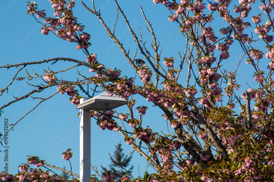 Street lamps and spring blossoms