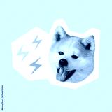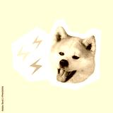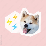 Surreal contemporary art collage in minimalistic magazine style, happy dog head with isolated like symbol. social media manager, influence marketing, positive blogger, selfcare, content creator, hype
